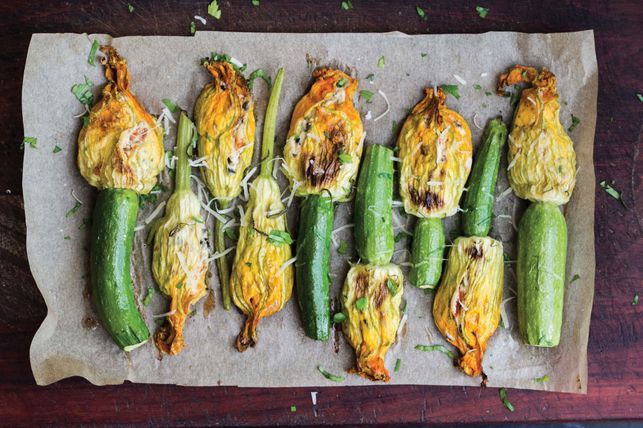 Plnené cuketové kvetyTieto lahodné kúsky sa pripravujú plnením cuketových kvetov, ktoré sa zbierajú v skorých ranných hodinách. Plnka pozostáva z ryže, paradajok, veľkého množstva citrónu, korenín a mäty.